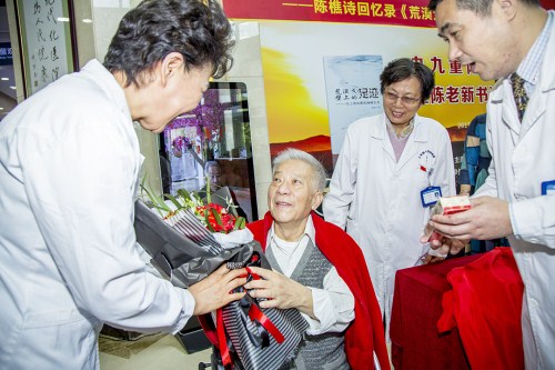 當(dāng)天,坐在輪椅上的陳樵詩(shī)老人精神矍鑠,十分開(kāi)心,不時(shí)與讀者進(jìn)行互動(dòng)交流,同時(shí),不少讀者也上臺(tái)朗讀了《荒漠戈壁上的足跡》書(shū)中的部分內(nèi)容。“真的謝謝醫(yī)院舉行這樣一個(gè)活動(dòng),也算是圓了老爺子的一個(gè)夢(mèng)。”陳樵詩(shī)老人的家人說(shuō)。
