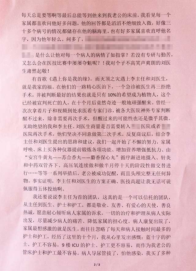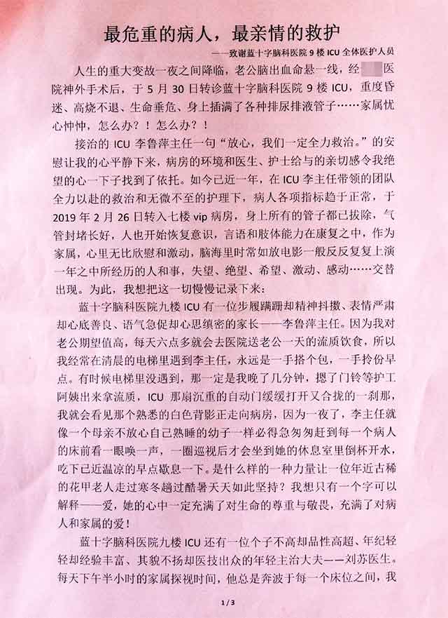 今天我們擷取一位9樓ICU患者家屬的感謝信,與您一同傾聽醫(yī)患背后的感人故事。