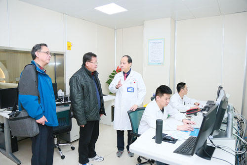張培林會長一行在項耀鈞院長等院領導的陪同下,先后深入我院全數(shù)字化 Hybrid-OR 復合手術室、ICU 重癥監(jiān)護病區(qū)、神經(jīng)內外科普通病區(qū)、神經(jīng)康復醫(yī)學科、高壓氧科、醫(yī)學影像科、DSA 介入中心等臨床重點科室實地考察,充分肯定了我院的發(fā)展成果,連說聲很高端、很溫馨,并表示要認真學習和借鑒、推廣我院的經(jīng)營管理經(jīng)驗。