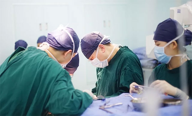 ▲ 專(zhuān)注于患者手術(shù)的潘仁龍主任、吳治群博士