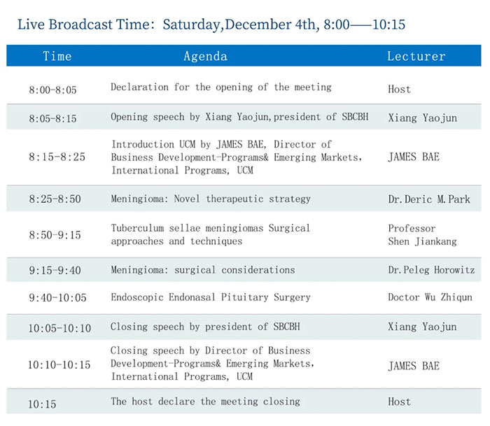 Live Forecast (Dec.4th): University of Chicago Medicine and Shanghai Blue Cross Brain Hospital Third Annual Neuro International Summit The Sino-US Forum of Treatment of Brain Neoplasms Surgery.