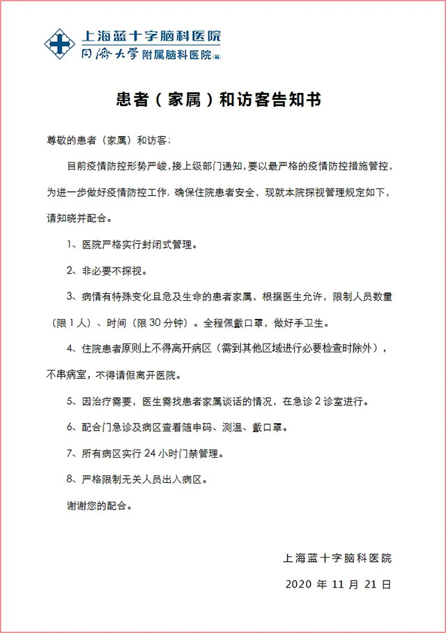 上海藍(lán)十字腦科醫(yī)院2020年11月23日