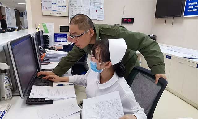 ▲ 雖然已是下班時(shí)間,接到科室問(wèn)題反饋后,信息科工程師立即趕到現(xiàn)場(chǎng)處理