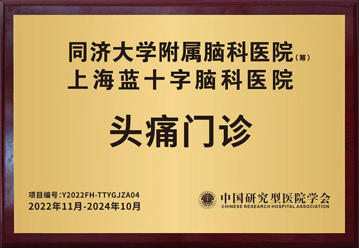 上海藍(lán)十字腦科醫(yī)院已開設(shè)頭痛專病門診多年,每周定期開診,形成了以中西醫(yī)結(jié)合方法辨證施治、診治各種類型頭痛的專科特色,強(qiáng)調(diào)頭痛治療的系統(tǒng)化、規(guī)范化和科學(xué)化。經(jīng)中國研究型醫(yī)院學(xué)會(huì)頭痛與感覺障礙專業(yè)委員會(huì)審核評(píng)估,醫(yī)院頭痛診療綜合實(shí)力達(dá)到頭痛門診建設(shè)標(biāo)準(zhǔn),獲批設(shè)立“頭痛門診”,這是學(xué)會(huì)批準(zhǔn)設(shè)立的上海市第二個(gè)“頭痛門診”,標(biāo)志著醫(yī)院正式成為中國頭痛防控基地及體系化建設(shè)單位,向打造品牌特色?朴诌~出了堅(jiān)實(shí)的一步。