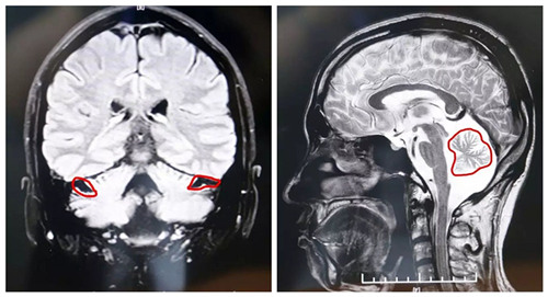 ▲MRI顯示,患者小腦萎縮狀況明顯