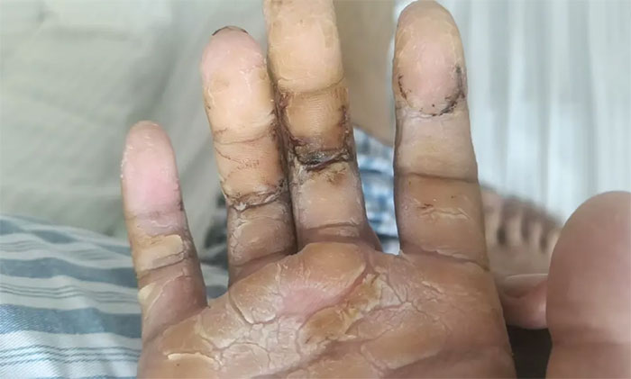 ▲ 入院時,患者手指腫脹僵直,屈伸功能受限