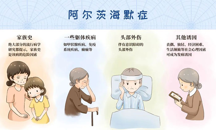 2.遺傳:有阿爾茲海默癥家族史的人更易患病。