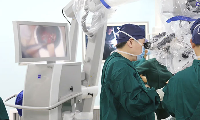9月13日,在制定詳細手術方案并充分完善術前準備后,李士其教授在吳治群博士、黃秀夫醫(yī)生協(xié)助下經蝶竇入路成功為患者進行了手術。