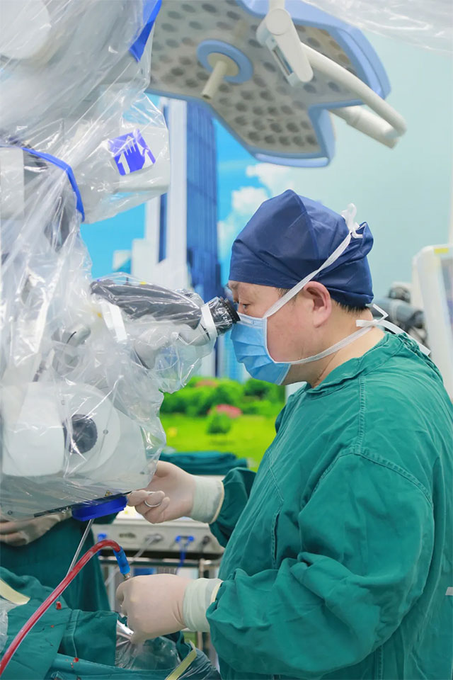 在征得患者家屬同意后,9月18日,李士其教授在吳治群博士和黃秀夫醫(yī)生協(xié)助下經(jīng)蝶竇入路成功為患者進行了手術,在蔡司顯微鏡(雙熒光)下順利將患者鞍內(nèi)腫物切除。術后患者視物異常癥狀消除,目前患者恢復良好,已康復出院。