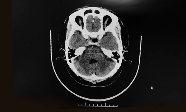 入院后完善患者各項檢查,發(fā)現(xiàn)患者左側視力0.6,右側視力0.4。為了進一步確定其腫瘤的位置、大小及發(fā)展情況,神經(jīng)外科6B病區(qū)主任潘仁龍建議其做增強頭部掃描。