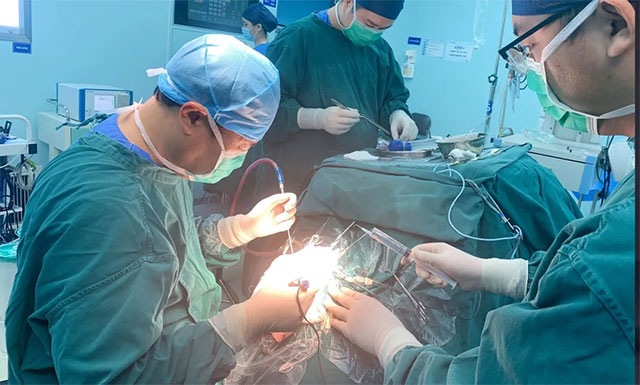 ▲ 楊忠旭教授正在為患者手術(shù)