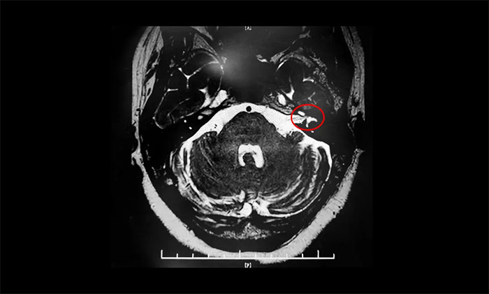 患者王阿姨左側(cè)眼面部抽搐10余年,以眼部最為明顯,偶有口角抽搐。起初,癥狀較輕,未引起重視,后病情加重才就醫(yī),經(jīng)藥物、針灸治療,無(wú)明顯效果。近兩年來(lái),癥狀持續(xù)加重,并影響睡眠。近日,王阿姨慕名求醫(yī)上海藍(lán)十字腦科醫(yī)院。面神經(jīng)MRTA檢查,結(jié)果示:左側(cè)面神經(jīng)與周?chē)⊙荜P(guān)系密切。確診面肌痙攣,手術(shù)指征明確。最終,楊忠旭博士順利為其行微血管減壓手術(shù)。