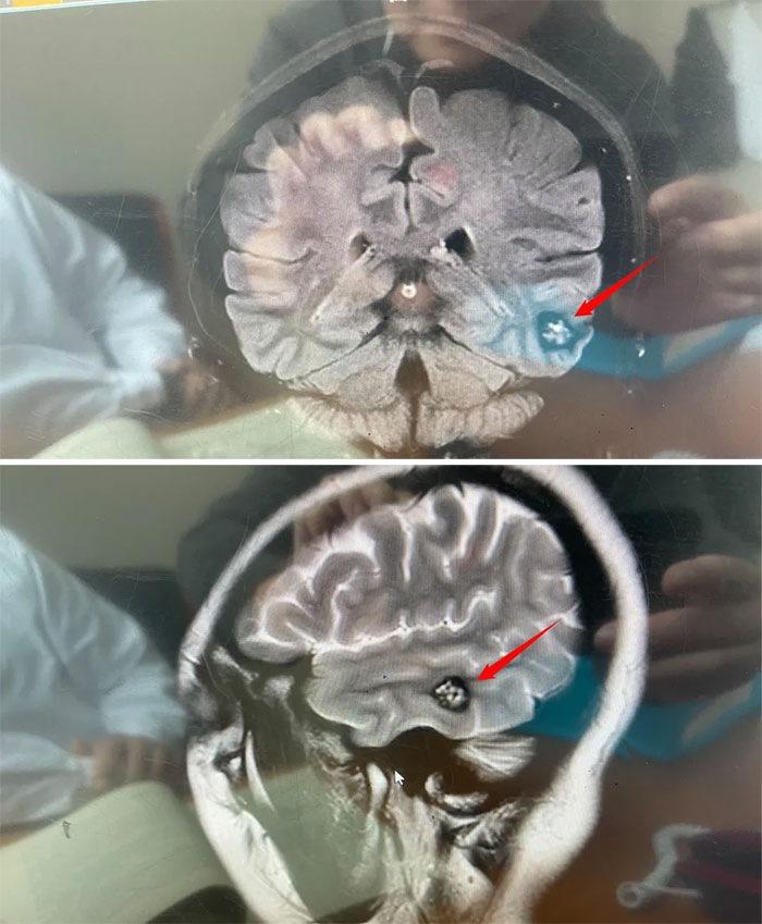 醫(yī)院神經(jīng)外科6A病區(qū)侯增欣主任團(tuán)隊(duì)為林女士完善相關(guān)檢查,頭顱磁共振顯示:左側(cè)顳葉見類圓形局灶性異常信號(hào)灶,約1.5*1.7*1.2cm。灶心“蜂窩狀”,灶內(nèi)微量出血(亞急性期)。