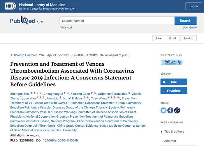 已有多例COVID-19患者合并靜脈血栓栓塞癥(VTE)的病例報道,尤其是合并肺栓塞(PE),這可能是造成感染者病情加重、甚至死亡的重要病因。此外,部分患者早期存在明顯的高凝狀態(tài),若不加以干預(yù)則可能繼發(fā)廣泛的微血栓形成,最終導(dǎo)致彌散性血管內(nèi)凝血(DIC),嚴(yán)重影響患者的預(yù)后。