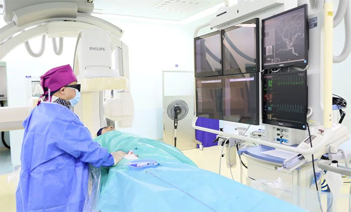▲ 席剛明教授在行介入手術(shù)