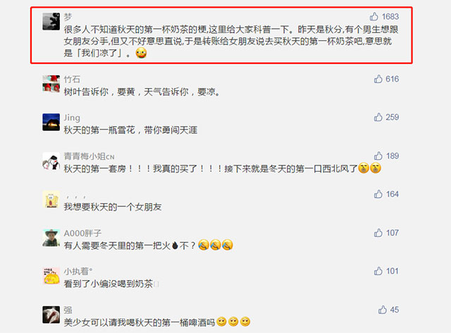 1.借著秋天來了要了杯奶茶的紅包,定義為秋天第一杯奶茶來秀恩愛;