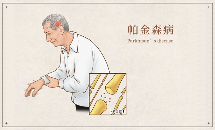 《中國帕金森病治療指南》(第四版)指出,帕金森病主要以黑質(zhì)多巴胺能神經(jīng)元進(jìn)行性退變和路易小體形成的病理變化,紋狀體區(qū)多巴胺遞質(zhì)降低、多巴胺與乙酰膽堿遞質(zhì)失平衡的生化改變,震顫、肌強(qiáng)直、動(dòng)作遲緩、姿勢(shì)平衡障礙的運(yùn)動(dòng)癥狀和睡眠障礙、嗅覺障礙、自主神經(jīng)功能障礙、認(rèn)知和精神障礙等非運(yùn)動(dòng)癥狀的臨床表現(xiàn)為顯著特征。