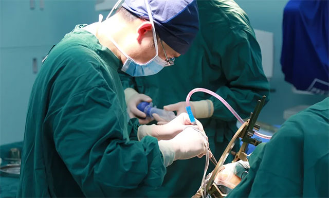 ▲ 劉偉欽主任為帕金森病患者手術(shù)