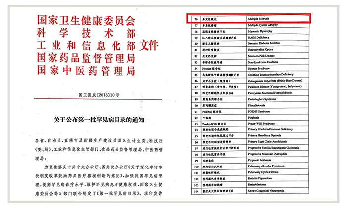 ▲ 2018年,多發(fā)性硬化被正式收錄進(jìn)我國(guó)《第一批罕見病目錄》