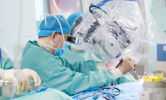 ▲ 沈教授在顯微鏡下為患者切除腫瘤
