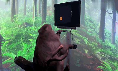第一階段,讓“猴哥” 用手柄來玩簡(jiǎn)單的基線游戲,同時(shí)通過神經(jīng)植入物,從“猴哥”大腦所釋放的腦電波信號(hào)中傳輸數(shù)據(jù),讓AI算法學(xué)習(xí)腦電波和手部動(dòng)作之間的映射。