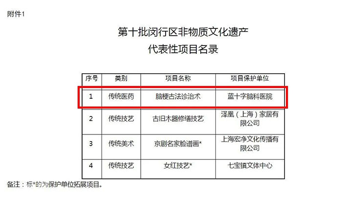 ▲ 藍(lán)十字“腦梗古法診治術(shù)”成功入選區(qū)第十批非物質(zhì)文化遺產(chǎn)代表性項(xiàng)目名錄