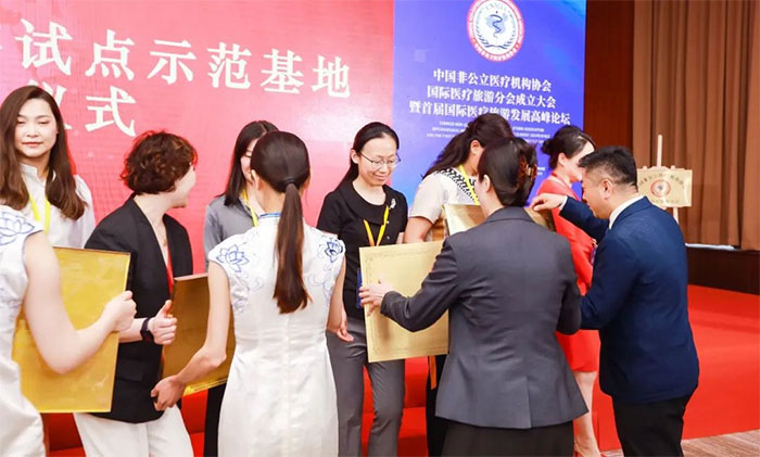 5月30日,中國(guó)非公立醫(yī)療機(jī)構(gòu)協(xié)會(huì)國(guó)際醫(yī)療旅游分會(huì)成立大會(huì)暨首屆國(guó)際醫(yī)療旅游發(fā)展高峰論壇在上海虹橋國(guó)家會(huì)展中心隆重召開(kāi)。協(xié)會(huì)常務(wù)副會(huì)長(zhǎng)兼秘書長(zhǎng)郝德明,上海市醫(yī)學(xué)會(huì)會(huì)長(zhǎng)鄔驚雷等有關(guān)領(lǐng)導(dǎo),來(lái)自海內(nèi)外國(guó)際醫(yī)療旅游相關(guān)產(chǎn)業(yè)領(lǐng)域的代表、教授專家、負(fù)責(zé)人等近200名嘉賓歡聚一堂,共襄盛會(huì)。會(huì)上,為國(guó)際醫(yī)療旅游試點(diǎn)示范基地和培育基地進(jìn)行了授牌。上海藍(lán)十字腦科醫(yī)院黨支部副書記趙宇蘭代表醫(yī)院上臺(tái)接受牌匾,并被聘任為協(xié)會(huì)國(guó)際醫(yī)療旅游分會(huì)第一屆委員會(huì)委員。