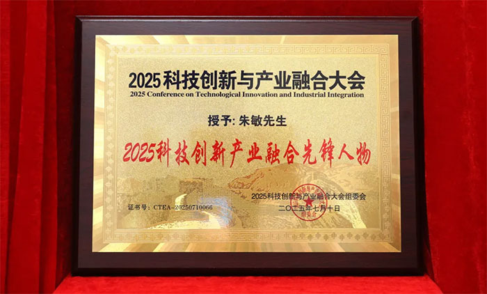 ▲ “2025科技創(chuàng)新產業(yè)融合先鋒人物”榮譽牌匾與證書