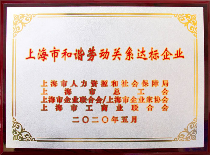 ▲ “上海市和諧勞動關(guān)系達標企業(yè)”榮譽牌匾