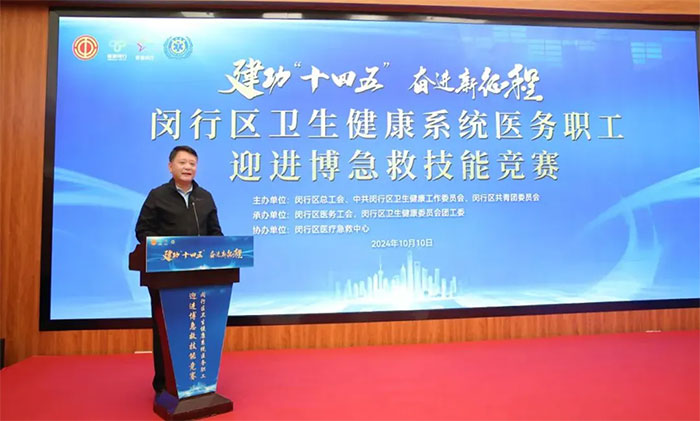 為增強閔行區(qū)醫(yī)務(wù)職工的醫(yī)療服務(wù)能力,提升第七屆進博會醫(yī)療衛(wèi)生保障服務(wù)水平,檢驗實戰(zhàn)應(yīng)急處置能力,由閔行區(qū)總工會、閔行區(qū)衛(wèi)生健康工作黨委、共青團閔行區(qū)委員會主辦,閔行區(qū)醫(yī)務(wù)工會、閔行區(qū)衛(wèi)生健康工作團委承辦,閔行區(qū)醫(yī)療急救中心協(xié)辦的“建功‘十四五’ 奮進新征程”——閔行區(qū)衛(wèi)生健康系統(tǒng)醫(yī)務(wù)職工迎進博急救技能競賽于10月10日下午成功舉辦。區(qū)總工會副主席丁琳、區(qū)衛(wèi)健委副主任程佳、團區(qū)委副書記陳昊等領(lǐng)導出席本次活動。