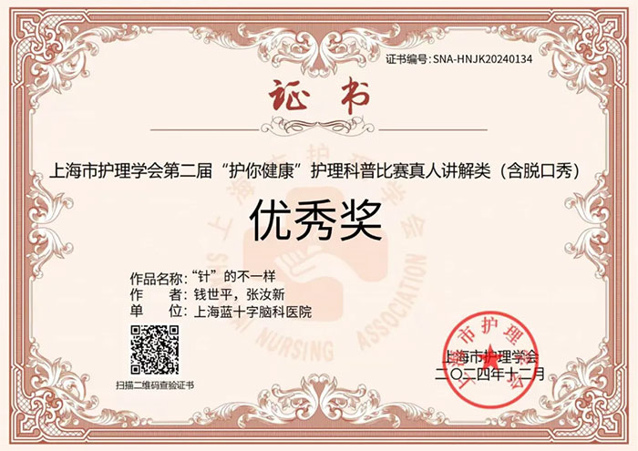 另一組參賽作品《“針”的不一樣》(作者:錢世平、張汝新)榮獲上海市護(hù)理學(xué)會(huì)第二屆“護(hù)你健康”護(hù)理科普比賽真人講解類(含脫口秀)優(yōu)秀獎(jiǎng)。