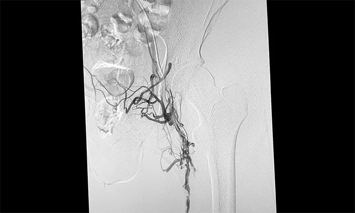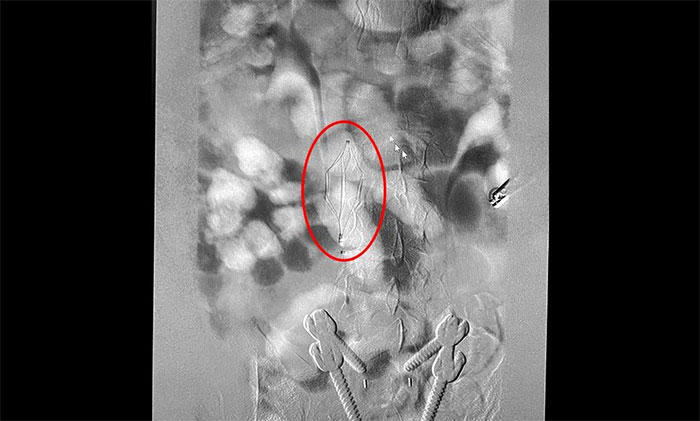 12月15日,席剛明教授在王貴平博士及介入團(tuán)隊(duì)協(xié)助下順利行將一個(gè)形似傘狀的人工濾器經(jīng)患者右側(cè)股靜脈穿刺迅速置入腎靜脈下方,“網(wǎng)”住了通往心血管和肺部的致命栓子,阻擋血液栓子進(jìn)入肺動(dòng)脈,及時(shí)挽救了患者生命。之后對(duì)病變血管進(jìn)行了血栓抽吸術(shù),及接觸性溶栓,抽出了大量血栓,復(fù)查下肢造影示血栓基本消失,下肢靜脈血管再通,整個(gè)手術(shù)順利完成。術(shù)后,患者下肢腫脹好轉(zhuǎn)。