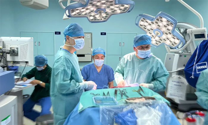 ▲6B醫(yī)護(hù)團(tuán)隊(duì)為吳先生進(jìn)行顱骨修補(bǔ)手術(shù)