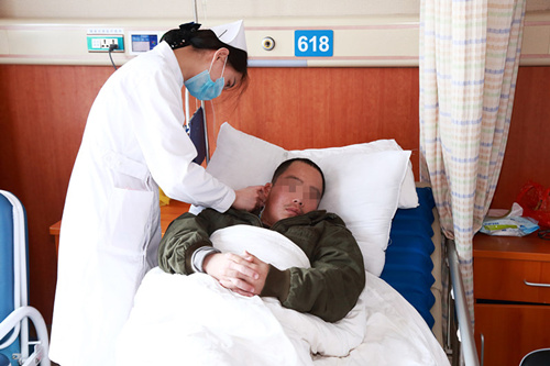 出院在即,護(hù)士仔細(xì)為卓文做最后一次護(hù)理