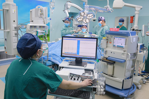 術(shù)中,腦電監(jiān)測崔麗華主任對患者進(jìn)行電生理監(jiān)測