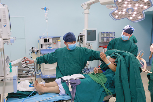 半小時(shí)后,患者被送出手術(shù)室,正在焦灼等待的家屬看到愛(ài)人的手和腿都不抖了,一直懸著的心終于放下了。