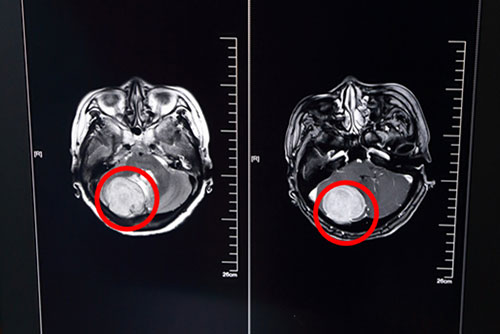 一年前,54歲的歐女士突然莫名斷斷續(xù)續(xù)出現(xiàn)頭痛,呈搏動樣,每次持續(xù)約2-3分鐘自行緩解,用歐女士自己的話說:“年紀(jì)來了,誰還沒個頭痛?”,自然沒放在心上。今年2月份,歐女士頭痛急劇加重,走路也出現(xiàn)不穩(wěn)現(xiàn)象,這才到醫(yī)院檢查,頭顱CT檢查示:右側(cè)小腦占位。