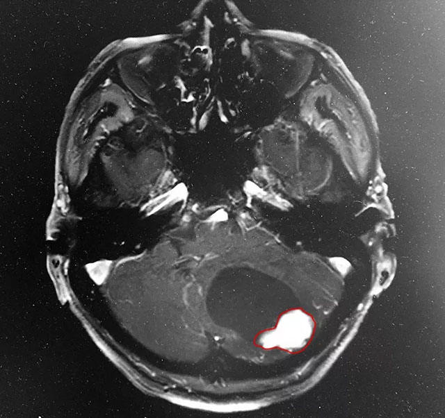 為了進一步明確病因,吳主任建議患者增強掃描:頭顱MRI平掃+增強+DWI+MRA,影像學(xué)結(jié)果提示:患者為良性的小腦腫瘤,同時結(jié)合患者病情、病癥和病史,考慮為血管母細(xì)胞瘤可能性很大。