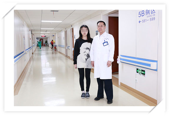 深感欣慰的李振并主任(右)與婷婷合影,并鼓勵(lì)她勇敢面對(duì)疾病