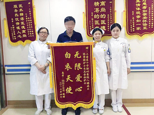 姚老伯家屬對護士長和其他護士的全心服務表示感謝