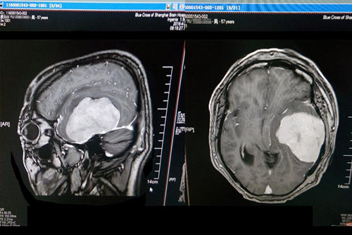 術(shù)前磁共振影像顯示巨大腦腫瘤