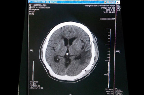 2016年4月,浙江寧波人,57歲的虞文軍(化名)因巨大腦腫瘤(8*6cm) 前來(lái)上海藍(lán)十字腦科醫(yī)院就診。經(jīng)包括沈建康教授在內(nèi)的專(zhuān)家會(huì)診后,考慮到患者腦腫瘤巨大、腫瘤周邊血供豐富,手術(shù)指征明確,常規(guī)手術(shù)切除恐出血過(guò)多,增加手術(shù)風(fēng)險(xiǎn),決定術(shù)前先為虞文軍行“超選擇性全腦血管造影術(shù)+腦膜瘤供血?jiǎng)用}栓塞術(shù)”,對(duì)腫瘤供血?jiǎng)用}進(jìn)行栓塞,減少出血量,再全麻下行“左側(cè)顳底部巨大腦膜瘤切除術(shù)”。沈教授已經(jīng)有十年未見(jiàn)過(guò)患者有如此大的腫瘤,患者術(shù)后隨即恢復(fù)清醒,自我感覺(jué)頭腦較前更清醒,語(yǔ)音、語(yǔ)速恢復(fù)較好,不到半個(gè)月便已能正常行走,順利出院。
