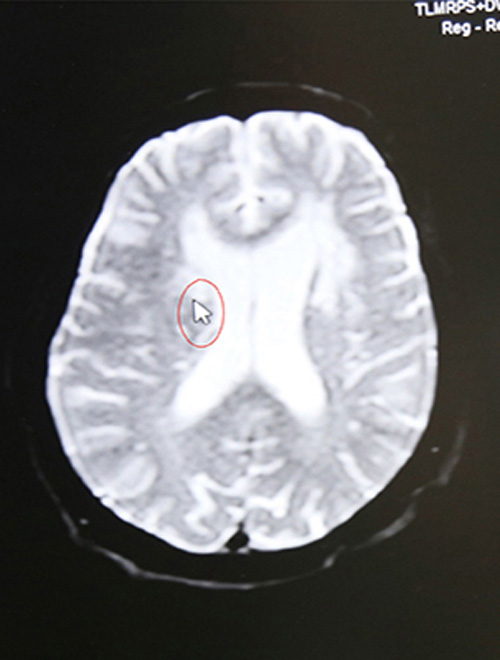 顱腦MRI示:右側(cè)基底節(jié)區(qū)腦梗塞