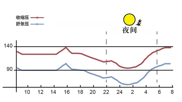 李振并主任進一步解釋,多數(shù)學者認為正常人24小時血壓節(jié)律呈雙峰雙谷,在凌晨2-3時一般為最低谷值。這種晝夜血壓波動曲線狀如長勺,可以形象地稱這種血壓為“勺型血壓”。