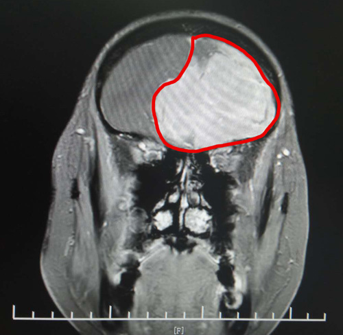 頭顱MRI影像清晰顯示了巨大的腦膜瘤