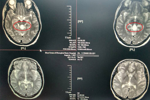 今年的3月份,李瑩忽然感到雙眼視物模糊,偶爾出現(xiàn)重影的情況,在丈夫的陪同下,李瑩到上海藍十字腦科醫(yī)院進行了全面的檢查。檢查中發(fā)現(xiàn),李瑩中腦四疊體旁有一囊性占位,供血不甚豐富,對四周結(jié)構(gòu)造成壓迫。