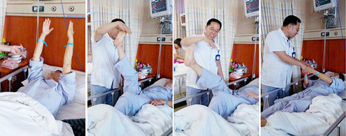 七月初的一天,80床的患者盛阿姨躺在病床上,精神狀態(tài)很不錯。李振并走進(jìn)病房查看,示意她動動胳膊。盛阿姨輕松地舉起了雙臂,接著又輕松地先后抬起左右腿,還能和李振并主任進(jìn)行簡單交流。這些動作,對于這位五月份以來剛經(jīng)歷了多發(fā)性大面積腦梗、言語不清、右側(cè)肢癱瘓的盛阿姨來說,幾乎不亞于又一次涅槃重生。