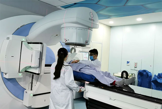 ▲ 瑞典醫(yī)科達 Elekta 全數(shù)字化直線加速器 Synergy 正精準定位病灶準備放療