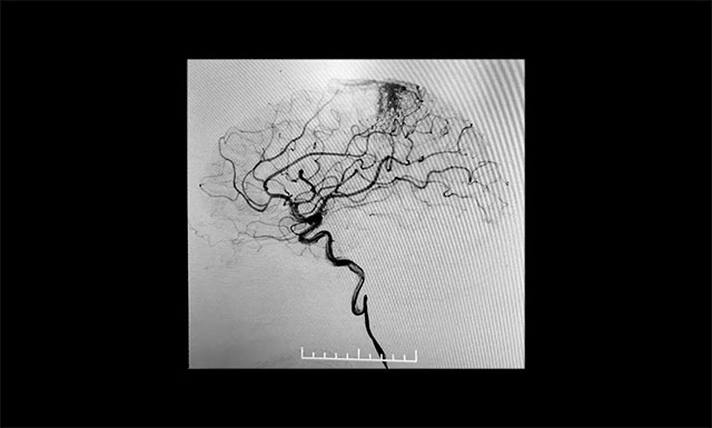 ▲ DSA檢查顯示,中央后回動(dòng)靜脈畸形