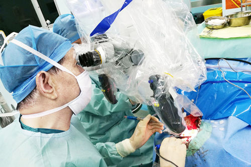 沈教授正在顯微鏡下進(jìn)行手術(shù)